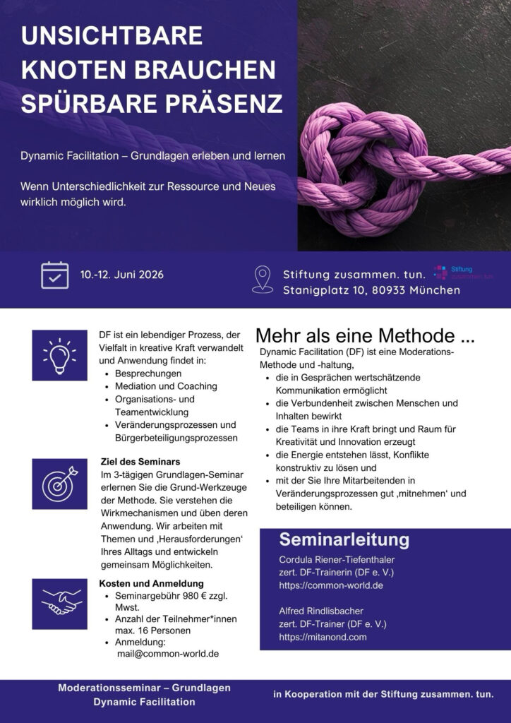 Aktueller Hinweis: Grundlagenseminar Dynamic Facilitation am 10.-12.06.2026 in München